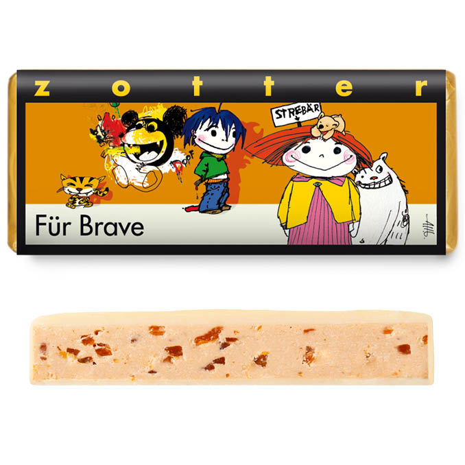 Schokolade für Kinder. In einer Schoko-Mandel-Creme summen und knacken leckere Honigblättchen. Überzogen von Weisser Schokolade.
